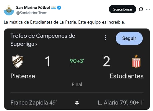 La consagración en el Trofeo de Campeones representa el cierre de un año exitoso para Estudiantes, que previamente había superado a Racing en la final del Torneo Clausura mediante una definición por penales. Ese triunfo le permitió asegurar su participación en la Copa Libertadores 2026, ya que no había logrado la clasificación a torneos internacionales por la vía de la Tabla Anual.
