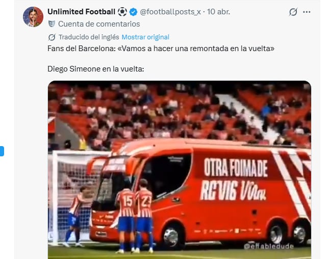 Las redes sociales se llenaron de memes sobre la táctica de Simeone, que apostó a un bloque bajo con hasta seis defensores tras el gol tempranero de Yamal. Los usuarios destacaron el sello del entrenador argentino, capaz de resistir bajo presión y avanzar en Europa con un planteo discutido pero efectivo. Bajo la conducción de Simeone, el Atlético ya eliminó tres veces al Barcelona en el torneo continental.