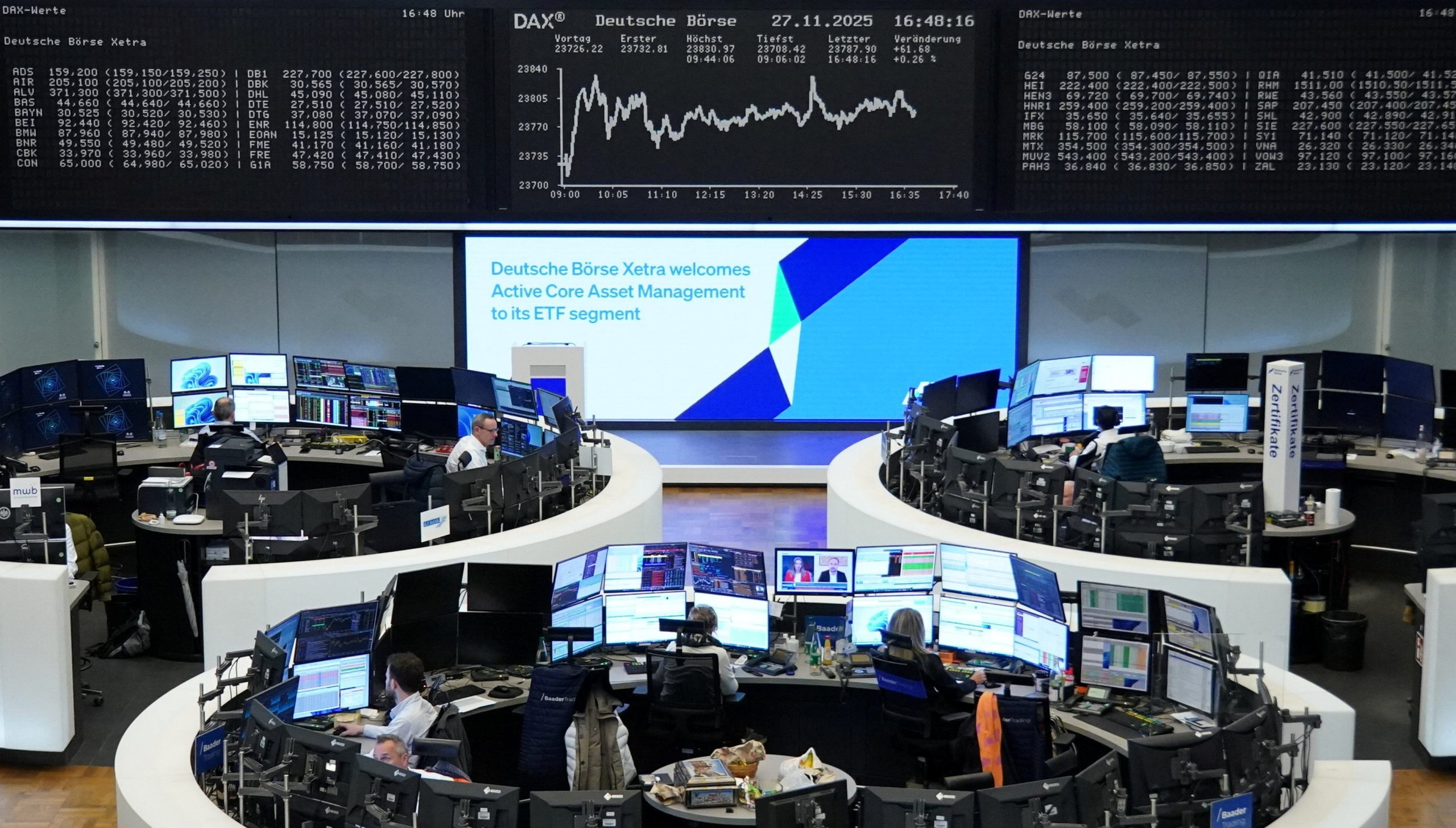 Un gráfico del índice bursátil alemán DAX se muestra en la bolsa de Fráncfort, Alemania. REUTERS/Staff