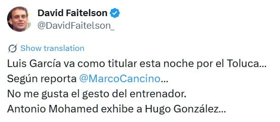 La controversia se originó por la decisión de Mohamed de relegar al banco al arquero Hugo González para el partido de vuelta, luego de un error cometido en la ida, y optar por Luis García como titular en el encuentro decisivo. Faitelson, conocido por sus opiniones provocadoras en la cobertura del fútbol mexicano, había cuestionado abiertamente la medida en sus redes sociales, escribiendo: “Luis García va como titular esta noche por el Toluca… No me gusta el gesto del entrenador. Antonio Mohamed exhibe a Hugo González…”.