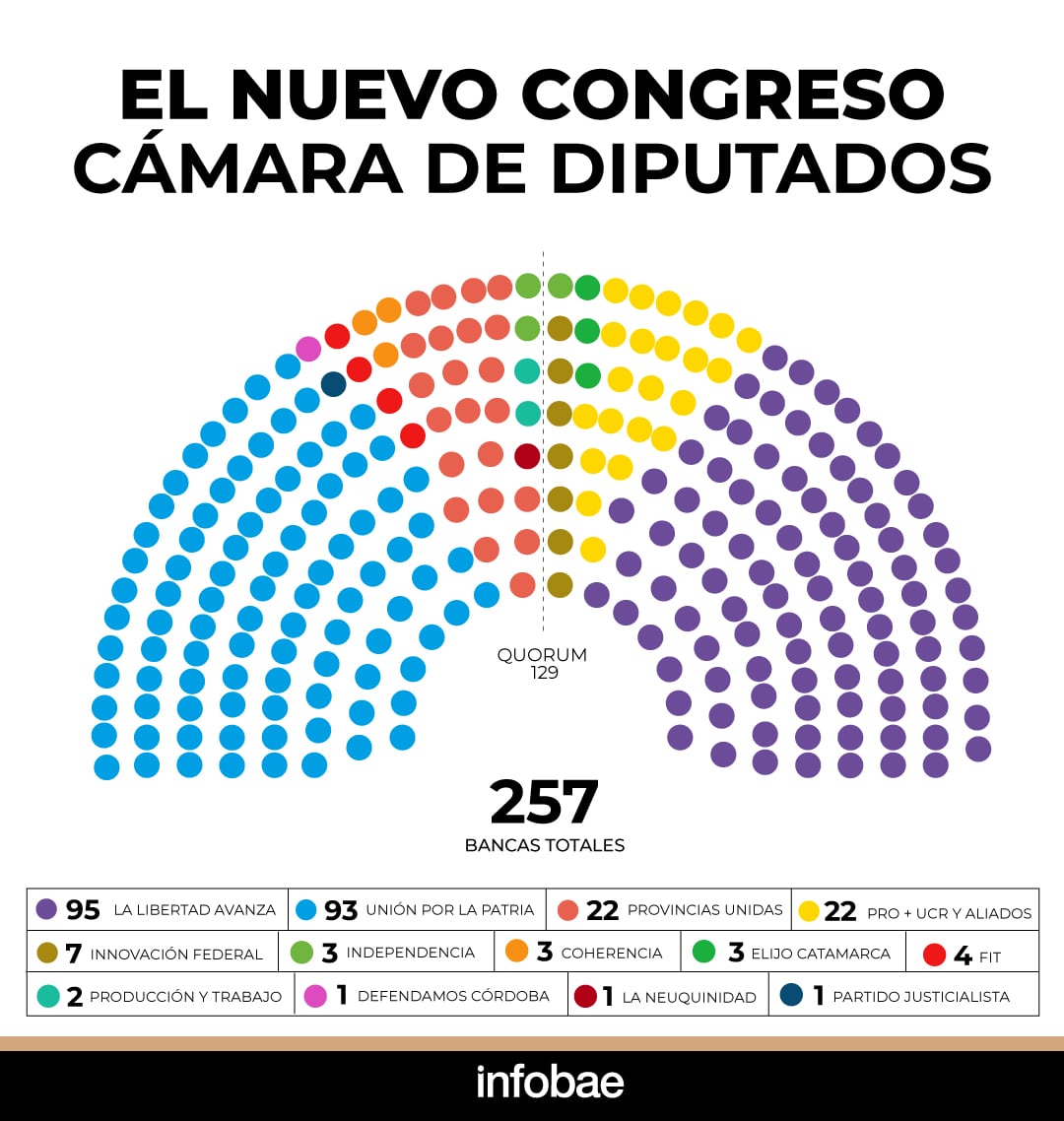 Cuando se conforme la Comisión de Presupuesto y Hacienda el oficialismo tendrá 20 sillas, el mismo número que tendrá Unión por la Patria. En ese esquema la definición pasará por los bloques del “centro” que están conformados por Provincias Unidas (la bancada que responde a los gobernadores de Provincias Unidas, la Coalición Cívica y Encuentro Federal); y el otro interbloque conformado por el PRO, la UCR, el MID, Adelante Buenos Aires y Por Santa Cruz. Ambos interbloques tendrán 4 sillas cada uno. Por último, quedará 1 silla para los legisladores que responden a los gobernadores Rovira y Saenz en el bloque Innovación.