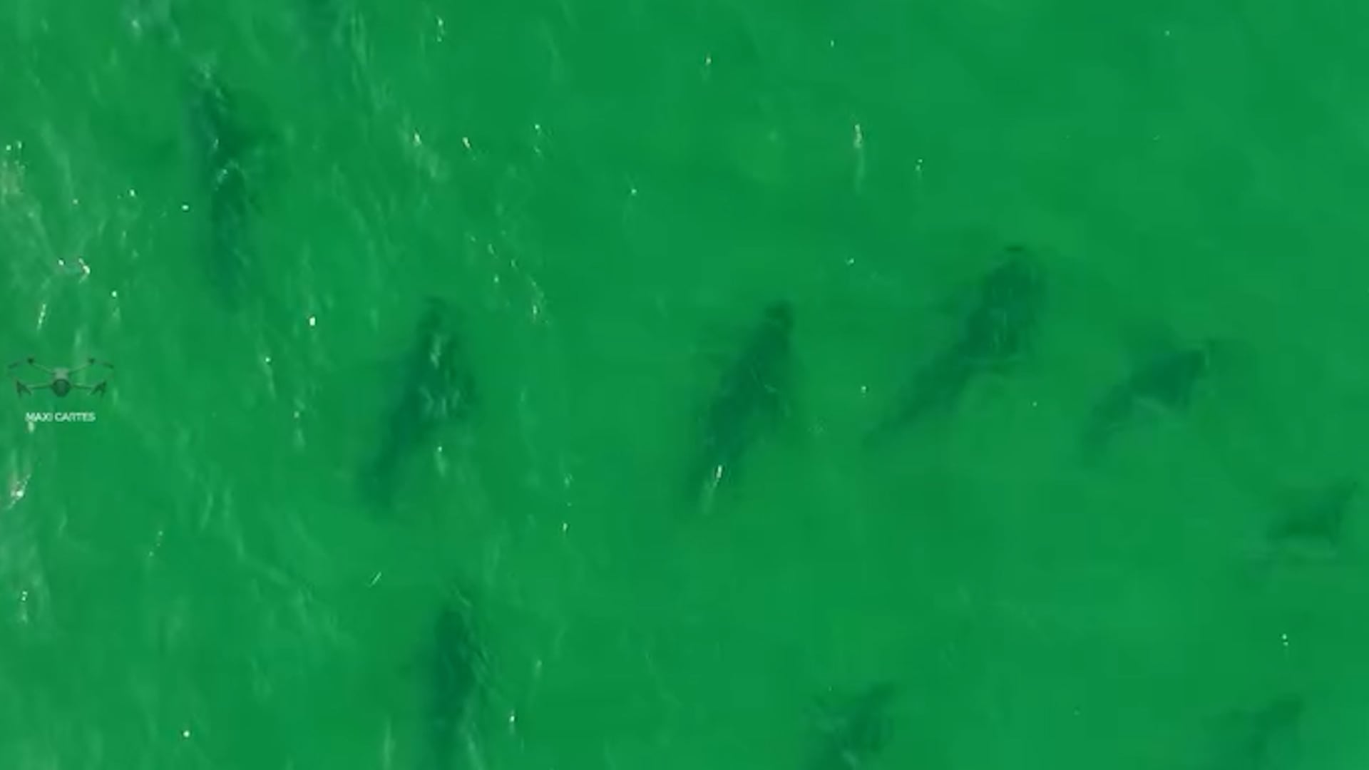La concentración de más de cien ejemplares fue documentada en la Bahía de San Antonio, en la zona de Las Grutas y San Antonio Oeste. Las imágenes aéreas muestran una “constelación de siluetas” bajo el agua, que se desplazaban en conjunto y correspondían a animales de entre 2,5 y 3 metros y hasta 100 kilos.