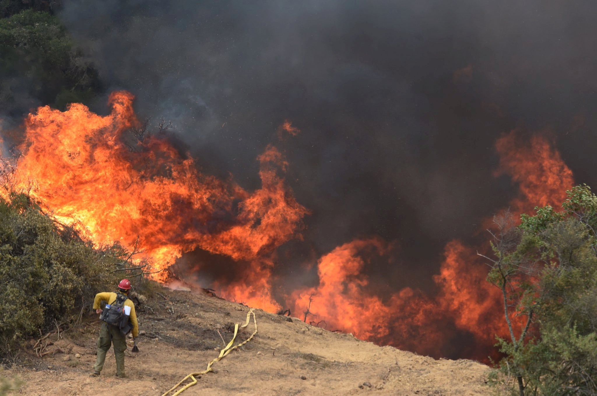 Estados Unidos activa alertas por peligro extremo de incendios forestales en 18 estados, afectando a 50 millones de habitantes según el NWS. (ARCHIVO/Mike Eliason/Santa Barbara County Fire/Handout via REUTERS)