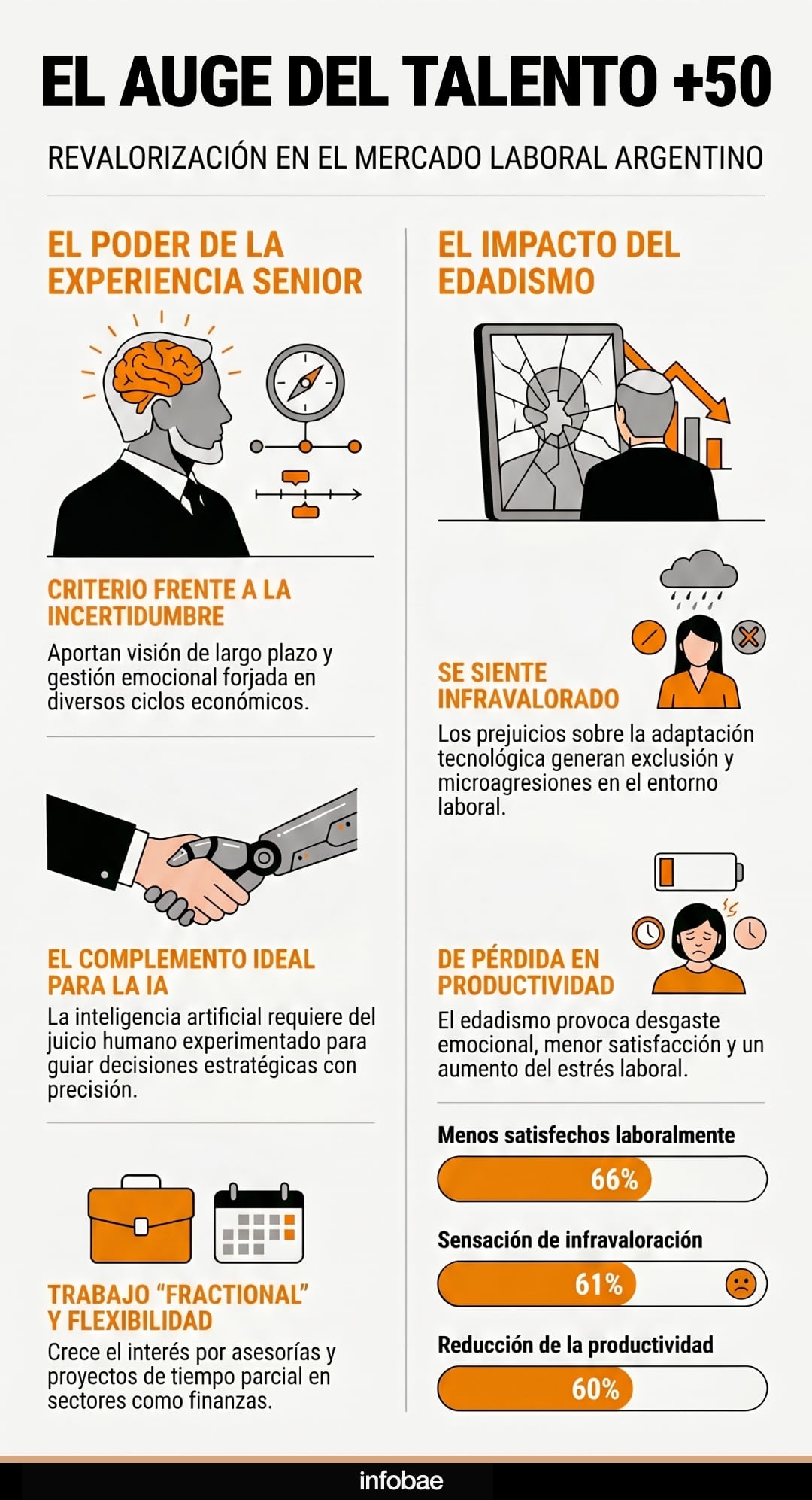 —Las organizaciones que excluyen a los profesionales mayores de 50 años pierden experiencia relevante para enfrentar contextos complejos y reducen su capacidad para desarrollar a nuevas generaciones. El edadismo, además, impacta negativamente al generar menor compromiso y autenticidad, deteriorando el ambiente de trabajo.