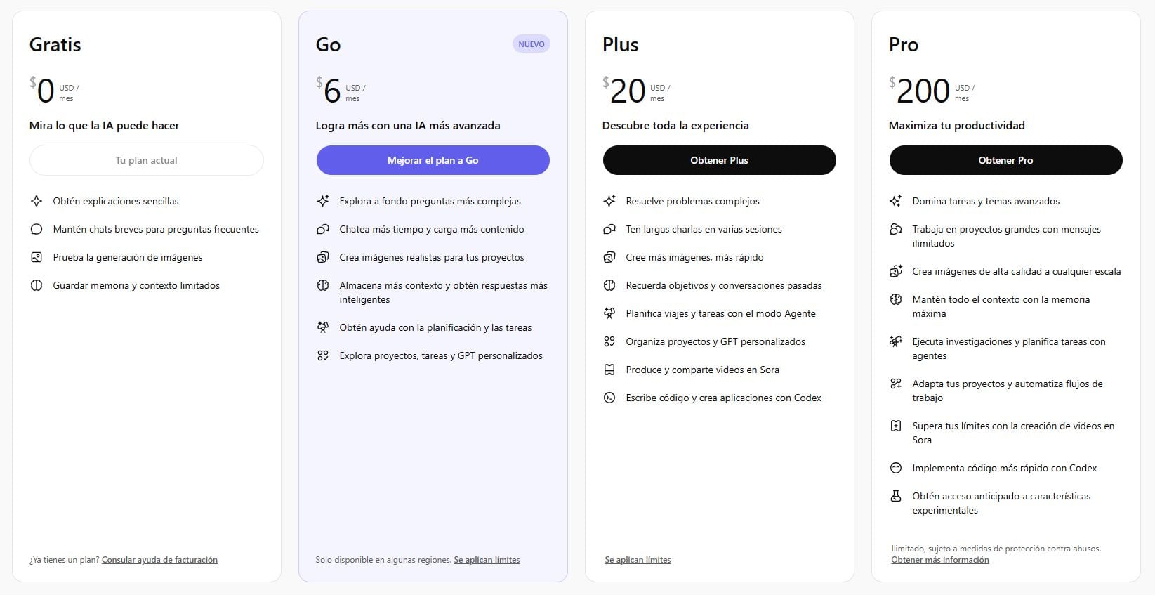 Comparado con la versión gratuita, ChatGPT Go ofrece: