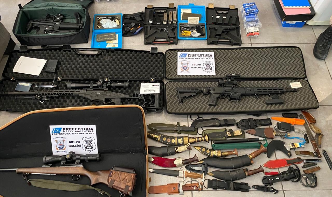 Los domicilios ligados a la organización fueron allanados por Prefectura. Se incautaron nueve armas de fuego-entre ellas un subfusil Walther calibre .22-casi 3,5 kilos de pólvorapara recarga de municiones ymás de dos mil balas.