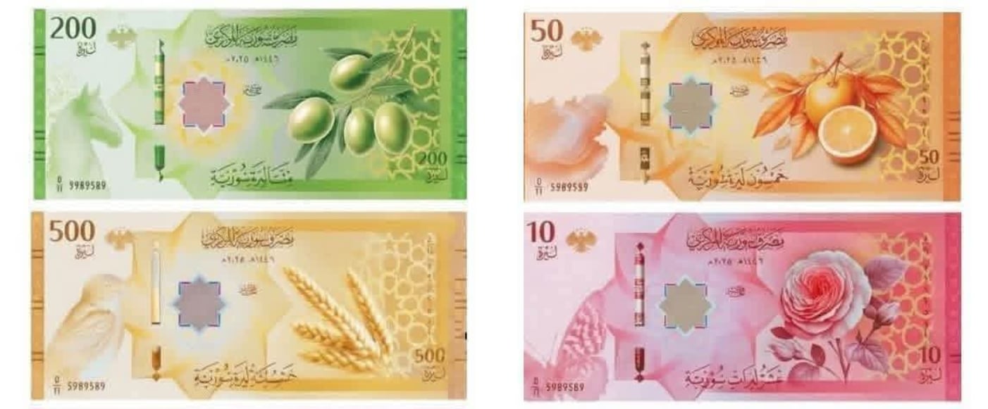 Los billetes presentan motivos que, según Al Sharaa, “reviven la memoria histórica de los bienes que originalmente estaban disponibles en Siria”, en referencia a productos agrícolas y símbolos reconocidos del país.