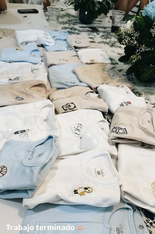 El baby shower se volvió aún más emotivo a medida que Sofía publicaba los resultados del taller de bordado: desde una medialuna y un sifón hasta un patito, todos los diseños expresaban la diversidad de amigos y familiares que la rodean. “Trabajo terminado”, anunció la actriz con una imagen de los bodies ya finalizados, convertidos en recuerdos imborrables que acompañarán al pequeño en sus primeros días. En una de las postales más entrañables, Sofía compartió una foto grupal con sus amigas y escribió: “Qué decir de esta tribu de mujeres que me acompañan día a día. Las amo… me emociona que mi hijo las tenga a todas ustedes en su vida. Gracias”.
