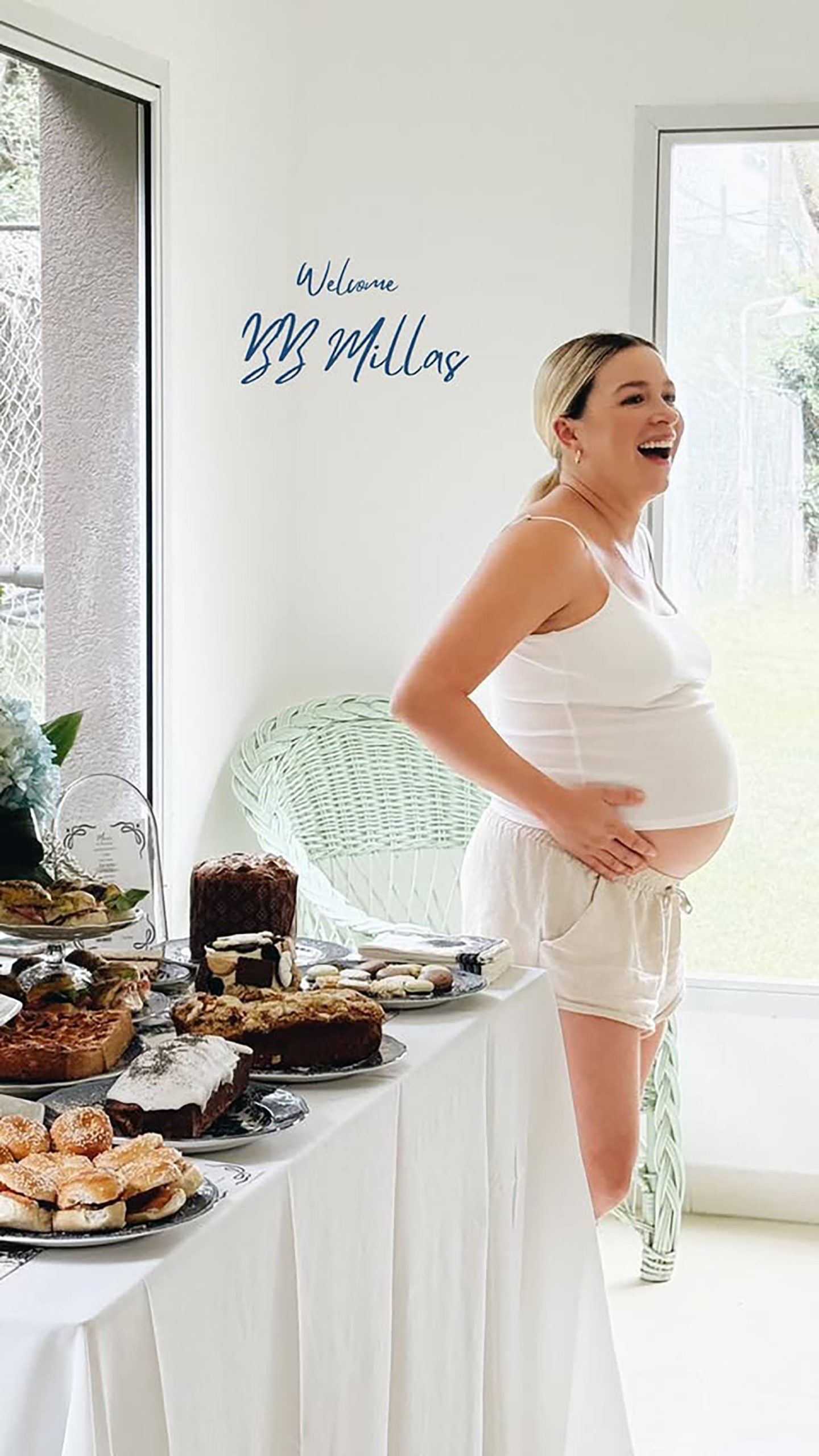 En redes sociales, Sofía se encargó de mostrar cada instante del evento, dejando en claro que la complicidad y el amor familiar son su principal fortaleza. La primera imagen que eligió revelar fue uno de los íconos de la cita: posando de costado, con su pancita de embarazada en primer plano, Sofía se mostró sonriente junto a una mesa repleta de opciones dulces y saladas que iban desde sándwiches y budines hasta el infaltable pan dulce. Detrás, un cartel escrito en inglés daba la bienvenida al “bebé millas”, apodo cariñoso elegido para el pequeño que está por llegar.
