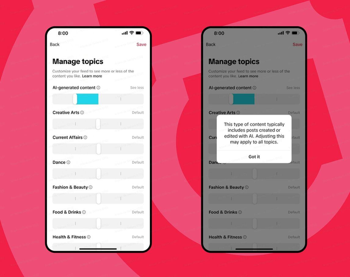 Los usuarios de TikTok podrán gestionar la cantidad de contenido generado por inteligencia artificial (IA) que ven en su feed con un nuevo ajuste que se aplicará de manera general a todos los temas.