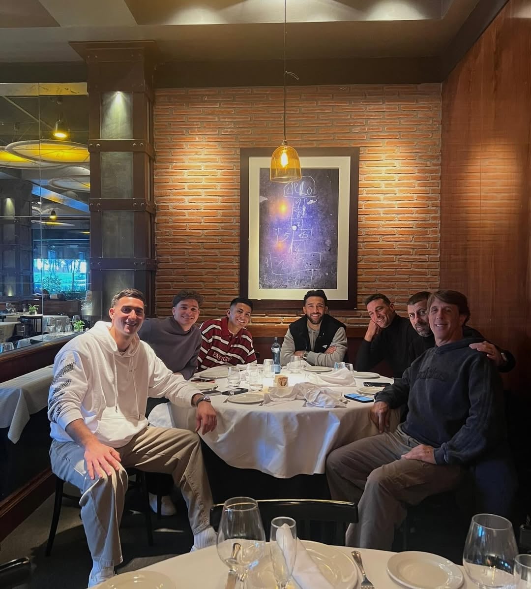 Luego de ese momento, el Gringo asistió al restaurante De María para reunirse con el arquero Juan Musso, los volantes Thiago Almada y Nicolás González y el delantero Julián Álvarez. Este local comercial mostró la intimidad de la charla con una fotografía en redes sociales, que tuvo un caluroso mensaje a los integrantes de la Albiceleste: “¡Vamos selección!”.