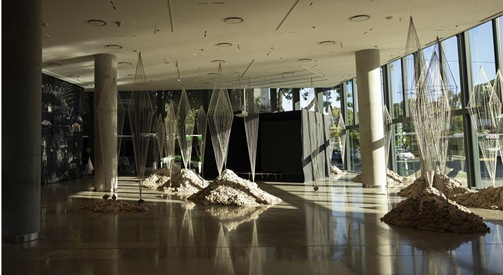 Fundación Santander, por su parte, tomó en este 2025 un rumbo diferente a los anteriores y realizó una muestra de extensión anual, a partir de un proyecto ganador pensado para el espacio: Hilo Frío de Valeria Conte Mac Donell, curada por Jimena Ferreiro, exploró el paisaje patagónico y la fragilidad con materiales como alambre e hilo, y ofreciendo una experiencia poética y onírica.