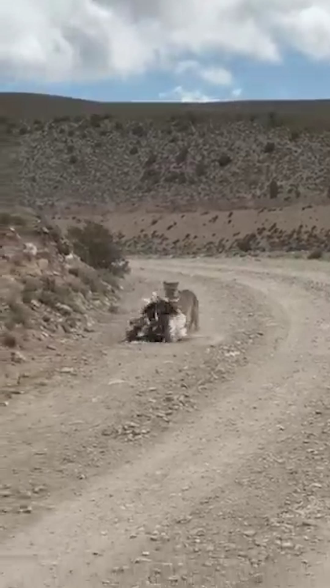 En las imágenes que encabezan la nota se puede ver cómo el impacto del salto levantó aún más polvo en la banquina, lo que demuestra la cercanía entre los visitantes y el depredador. El video deja ver que la escena ocurrió a escasos metros de la motocicleta, lo que enfatizó la situación para quienes filmaban. Todo indica que el puma ya se encontraba oculto en las inmediaciones, atento al desplazamiento de las aves, y que la presencia del vehículo pudo haber alterado el comportamiento del grupo, facilitando la captura.