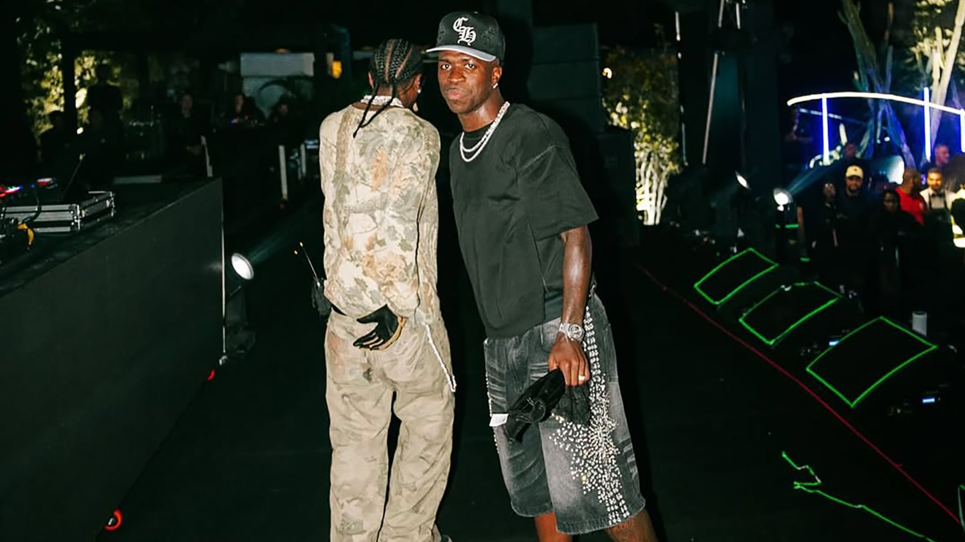 La prensa local en tanto detalló que la fiesta de cumpleaños de Vinicius Junior fue una mega celebración que incluyó conciertos en distintos escenarios repartidos en el predio, entre ellos uno del rapero Travis Scott; espectáculos de fuegos artificiales y atracciones propias de un parque de diversiones, como una montaña rusa y un samba. Según datos publicados por O Globo, el evento congregó a cerca de 500 invitados, entre los que figuraban el mediocampista francés Eduardo Camavinga y el defensor Eder Militao, compañeros de Vinicius en el Real Madrid, y la cantante brasileña Anitta, reconocida figura del reguetón latinoamericano, entre otras figuras.