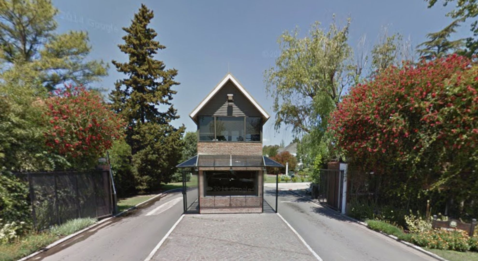 La entrada del country Carlos Pellegrini, en donde se ubica la casa de la denunciante