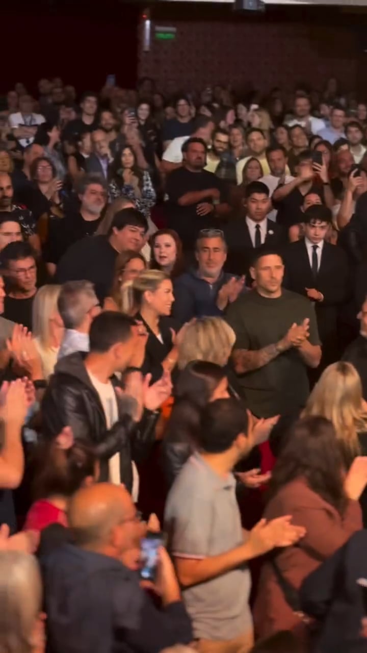 La noche tuvo más sorpresas. Tras la última ovación, cuando la sala aún vibraba con los aplausos, las luces enfocaron a Nico Vázquez saludando a Wanda Nara desde el escenario. El gesto, sencillo y sincero, recibió el agradecimiento inmediato: pareja en pie, sonrisas limpias. Mientras el público los celebraba, una cámara inmortalizó la secuencia: la empresaria, el empresario y el artista tejiendo un acto de reconocimiento mutuo.